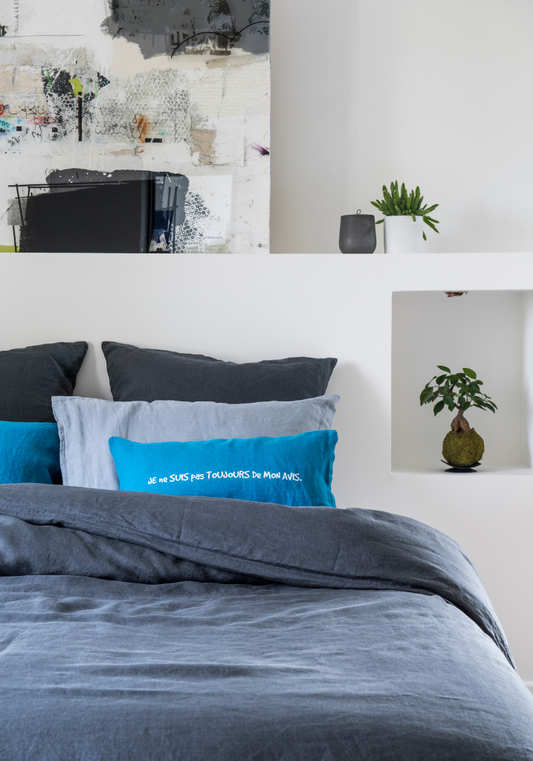 Nous avons donc décidé de créer nos propres parures de lit en lin lavé 100% fabriquées en Europe. Soucieux de l’environnement, le choix du lin s’est présenté à nous comme une évidence. Ce tissu, intemporel et résistant, traverse le temps, les modes et les tendances pour repousser l'étape du recyclage.